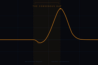Velocity, consensus formation, and why the window between escalation and market recognition is the most underpriced risk in modern portfolios.